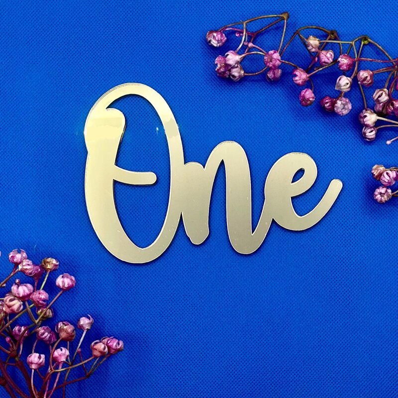 Cake topper frontale con scritta "One". Contatta il nostro staf all'indirizzo mail info@tecnoartshop.it per personalizzare o modificare il prodotto Dimensioni: 15x10,5 cm Spessore: 3mm