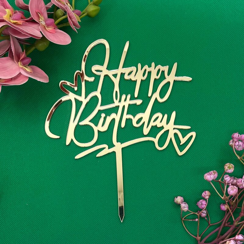 Cake topper "Happy birthday" - Plexiglass oro specchio