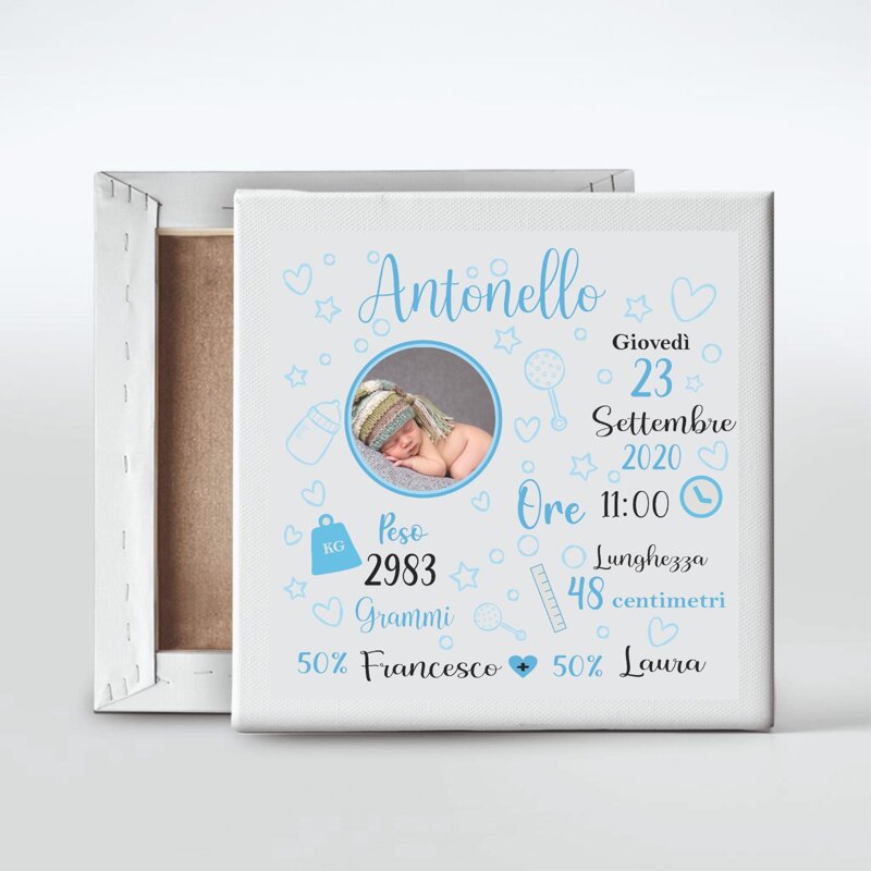 Quadretto personalizzabile. Stampato su tela. Per la personalizzazione verrai contattato dal nostro staff che ti invierà una bozza grafica del tuo ordine Misure: 20x20cm